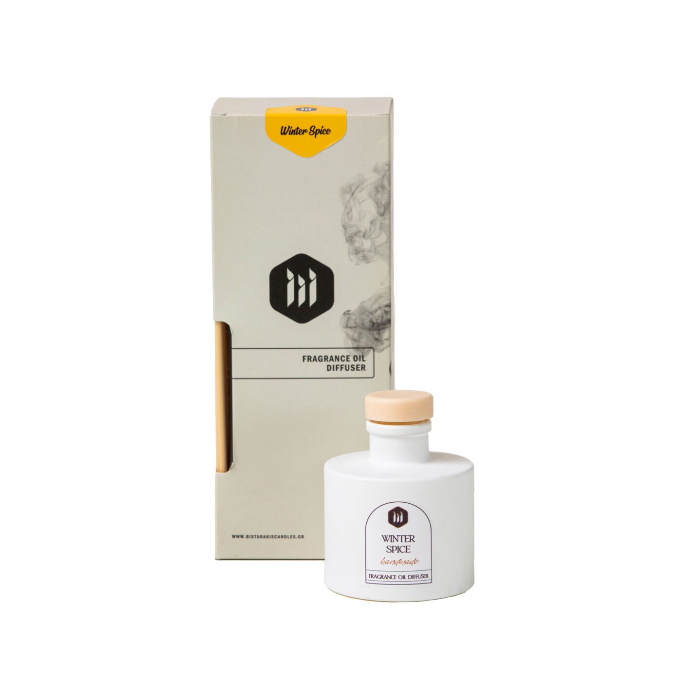 Το αρωματικό χώρου diffuser Winter Spice φέρνει στον χώρο σας την απόλυτη χειμωνιάτικη ατμόσφαιρα με διακριτική αλλά διαρκή διάχυση. Γλυκό πορτοκάλι, πικάντικος κόλιανδρος, κανέλα και γαρύφαλλο συνδυάζονται σε ένα άρωμα που θυμίζει το παραδοσιακό ζεστό κρασί των ευρωπαϊκών αγορών, γεμίζοντας το σπίτι με θαλπωρή, νοσταλγία και γιορτινή διάθεση.