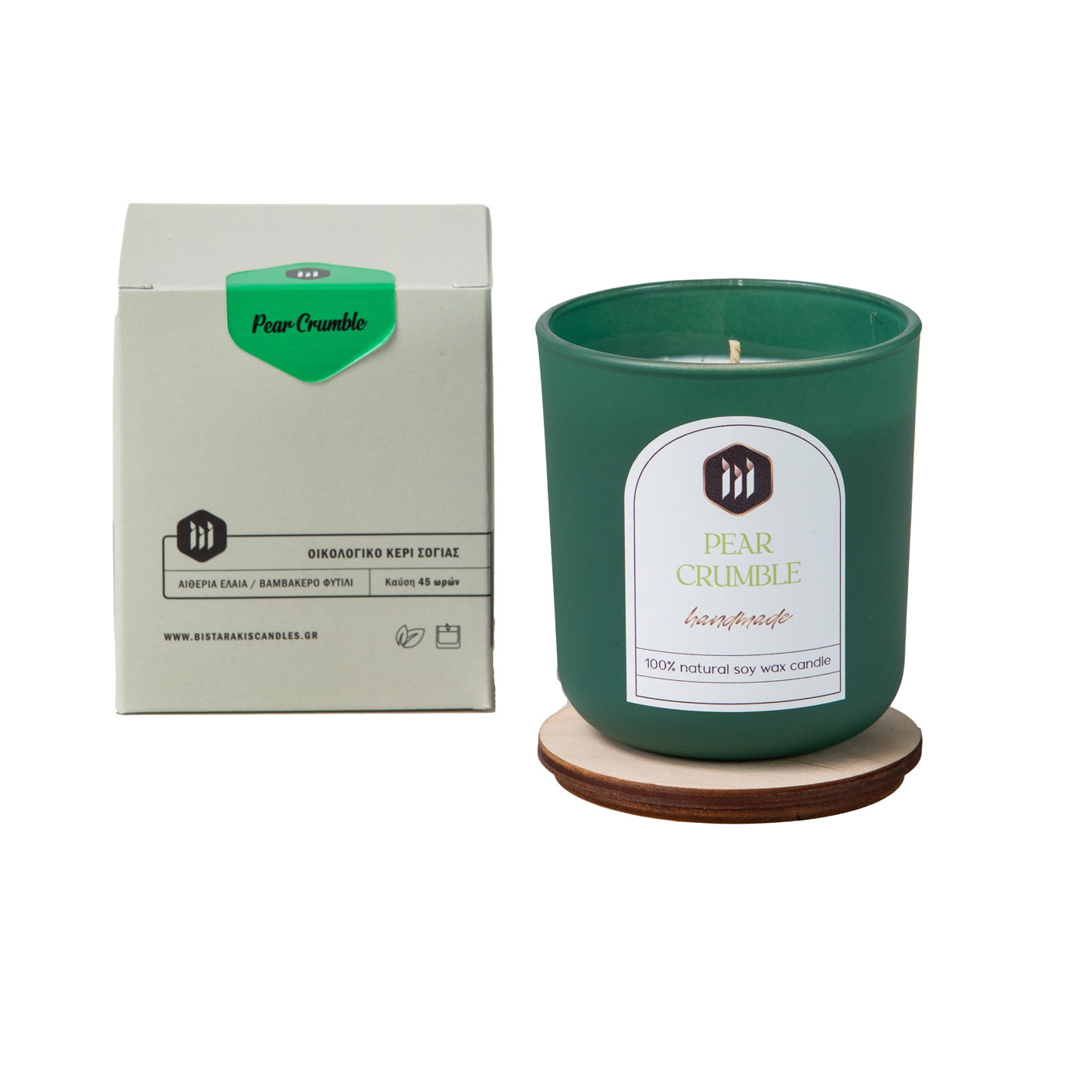 Ζεστό, γλυκό και καθησυχαστικό-σαν μια φρέσκια πίτα αχλάδι που μόλις βγήκε από τον φούρνο. Το αρωματικό κερί Pear Crumble συνδυάζει ντελικάτες νότες ώριμου αχλαδιού, μαγειρεμένου με καστανή ζάχαρη, κανέλα και τραγανό crumble βουτύρου. Ένα φθινοπωρινό άρωμα που πλημμυρίζει τον χώρο με θαλπωρή και νοσταλγία, ιδανικό για χαλαρές στιγμές στο σπίτι.